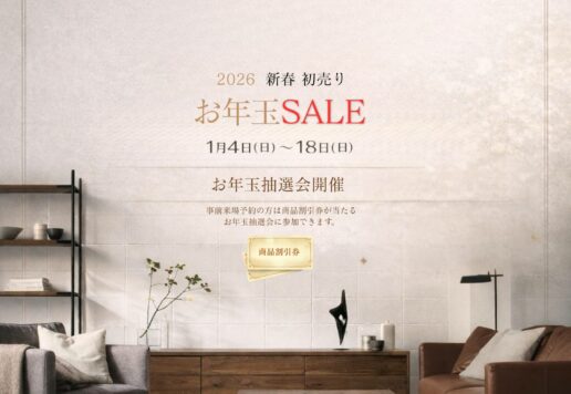 1月4日(日)〜18日(日) 2026 新春 初売り お年玉セール 新春だけのお得なセール。 期間中はショールーム展示商品が お年玉特別価格で購入していただけます。 無垢のダイニングテーブルや人気のソファ...